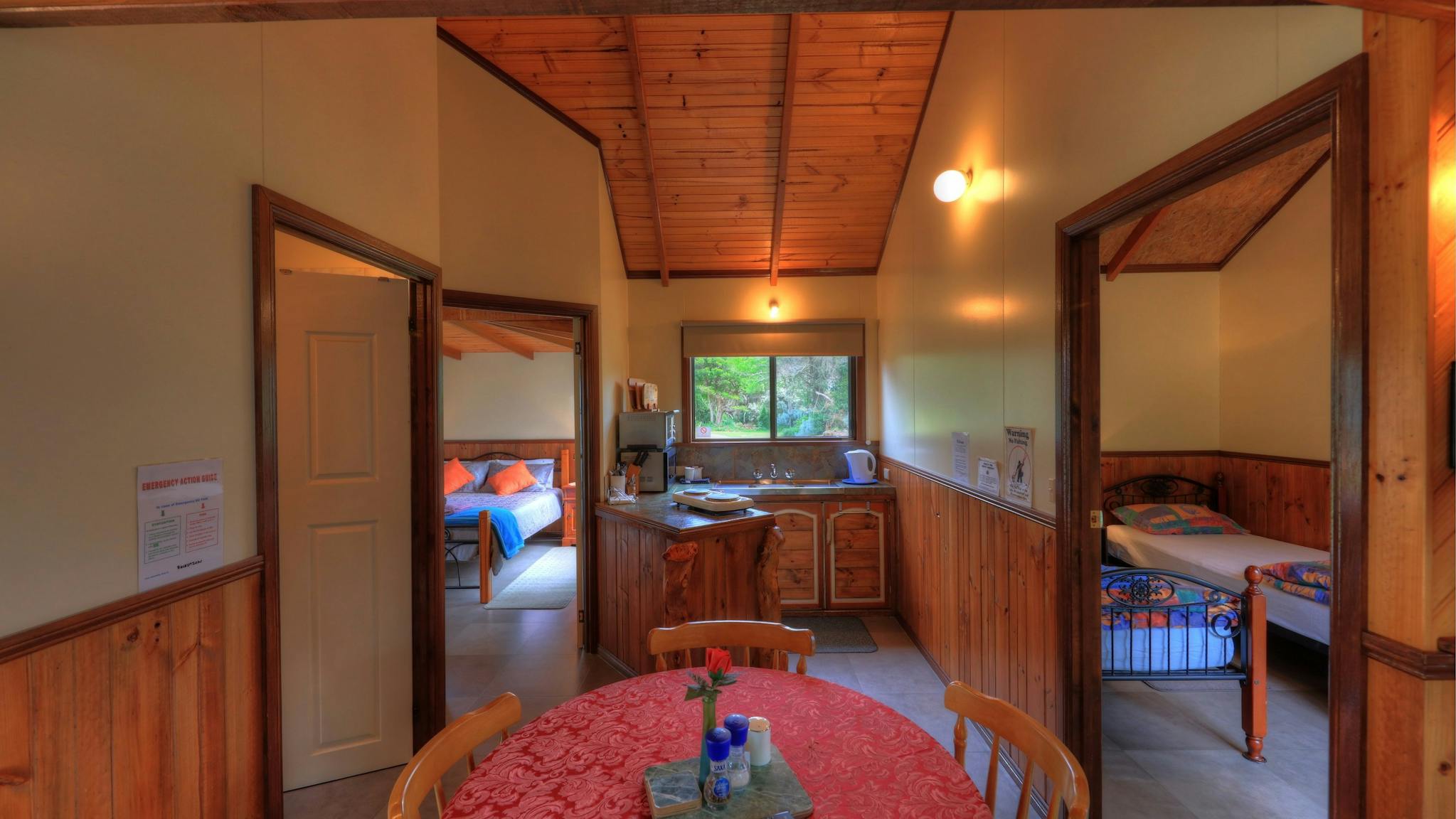 Cottages consist of two bedrooms, with queen bed and 2nd with single beds as well as a three corner spa, kitchenette facilities with microwave, two hotplates, toaster oven and bar fridge plus a television.
